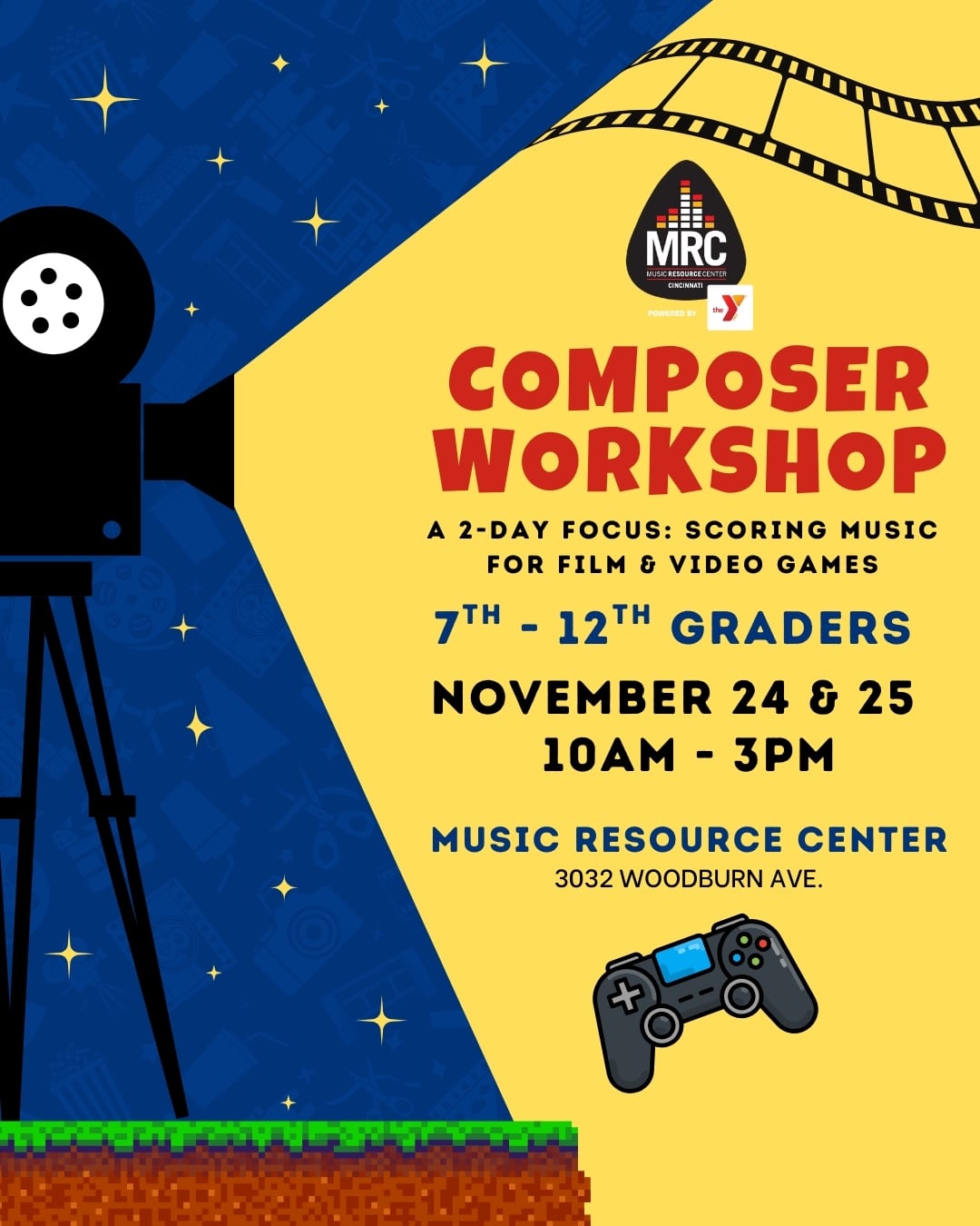 At Composer Workshop: Scoring Music for Film & Video Games, students in grades 7–12 will dive into the world of composing for the screen. Over two days, you’ll work individually and in groups to create and score original music for a movie or video game trailer. With expert guidance, you’ll learn the art of matching music to visuals, building emotion, and telling stories through sound. Whether you’re brand new to composition or already producing beats and tracks, this workshop offers a unique chance to stretch your creativity in a fun, supportive environment. By the end, you’ll walk away with a completed project, new skills, and new friends.